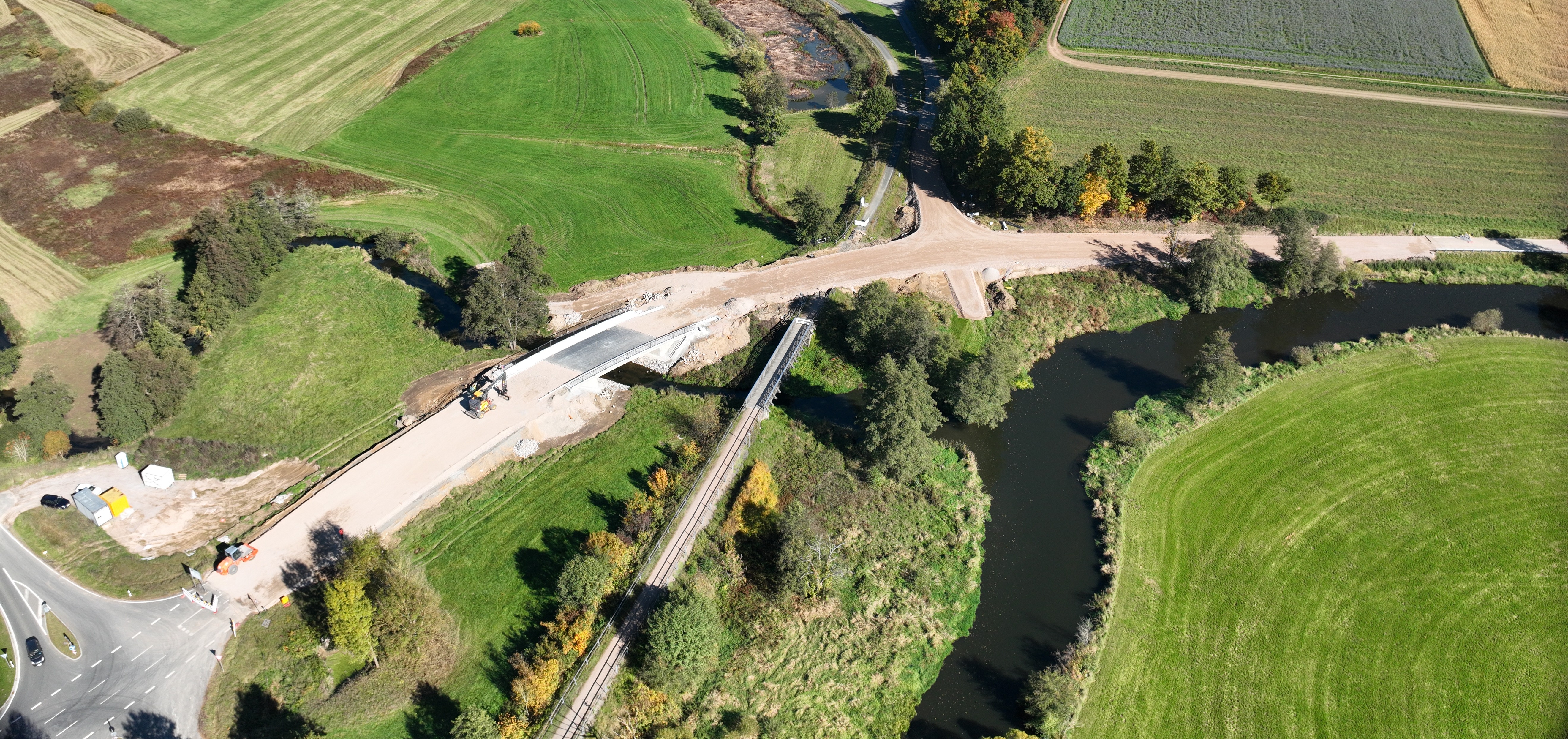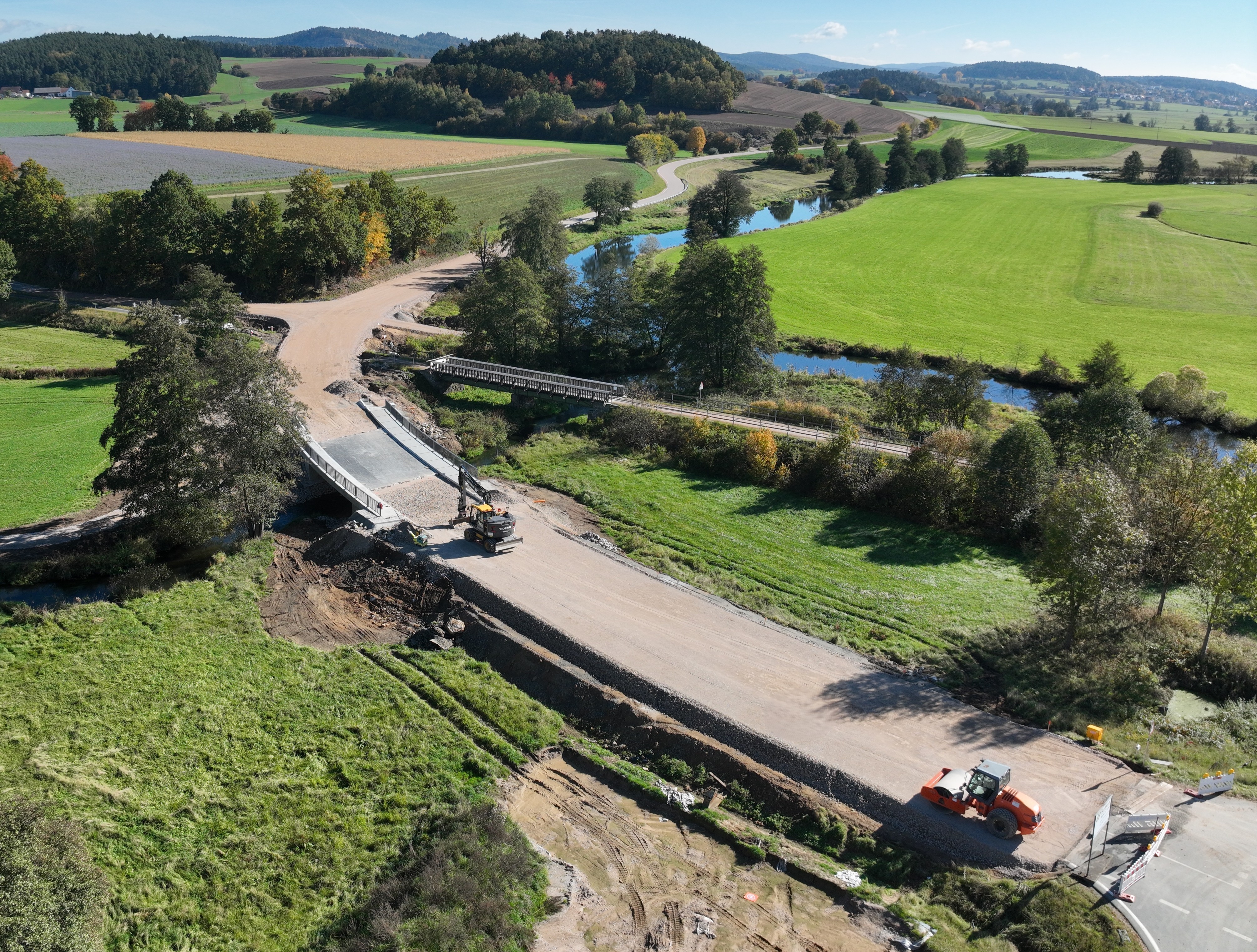 Die Bauarbeiten umfassen den Neubau der Murachbrücke sowie die Anpassung des Straßenverlaufs im Bereich der Brücke und der Zufahrt Uckersdorf. Nach mehreren Monaten intensiver Bauzeit kann die Maßnahme bereits vorzeitig vor der Winterpause im Jahr 2025 fertiggestellt werden. Mit der Fertigstellung wird die neue Murachbrücke sowie der optimierte Straßenabschnitt im Bereich der Zufahrt Uckersdorf eine sichere und stabile Verkehrsführung bieten und den Verkehrsfluss deutlich verbessern.